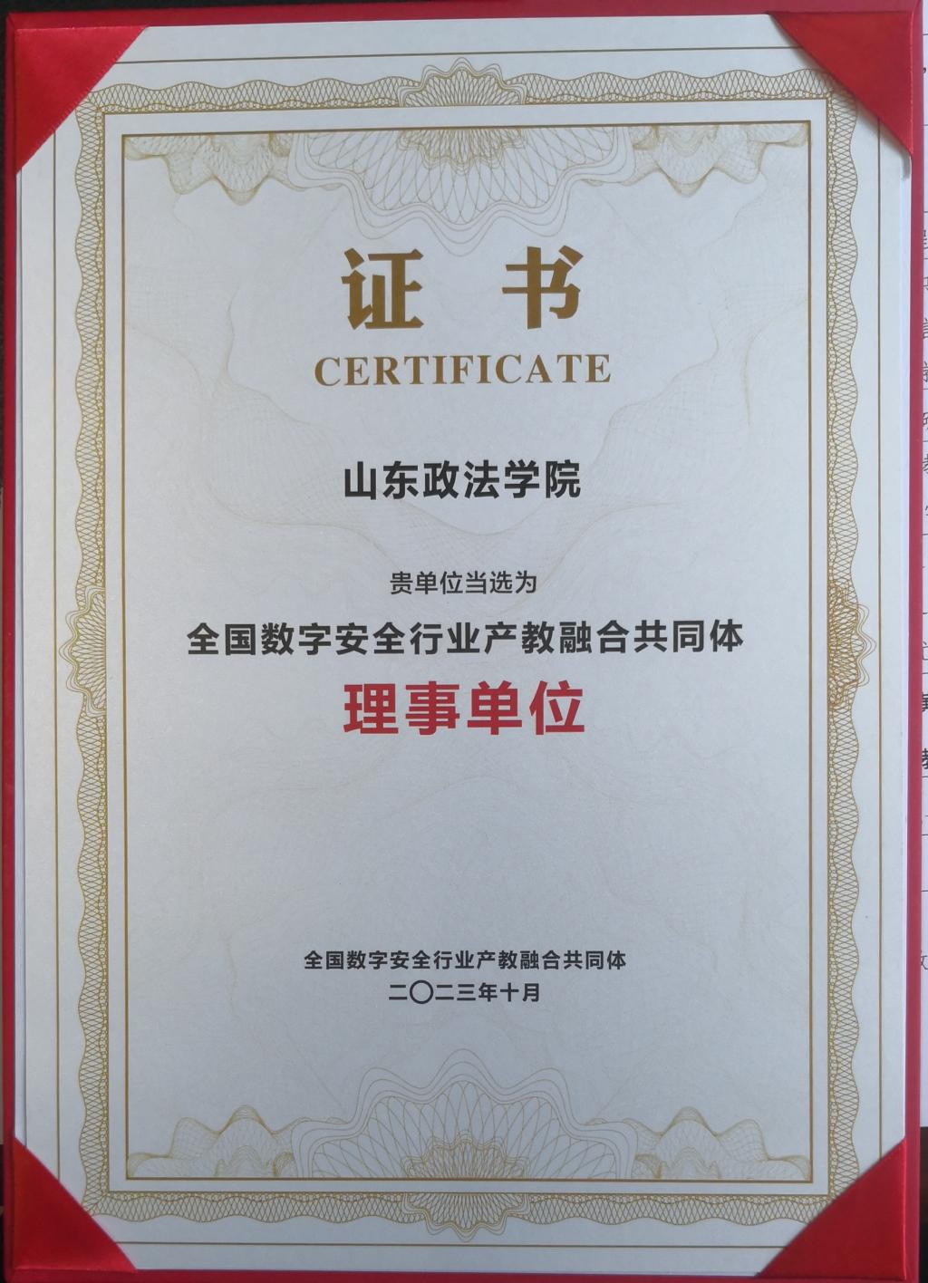 10月21日,全国数字安全行业产教融合共同体理事单位成立大会在杭州召开,会上,山东政法学院当选为理事单位。此次大会由工业和信息化部教育与考试中心、全国工业和信息化职业教育教学指导委员会指导,安恒信息、西安电子科技大学、杭州职业技术学院主办。