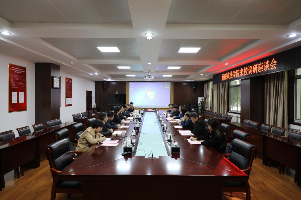 10月22日,新疆政法学院党委书记任长义,校长助理祁欢、向前,人事处负责人李先卓,发展规划处处长周文戟,信息网络安全学院院长祁建军等一行8人来我校调研座谈,并与我校签署战略合作协议。校长吕涛,学校党委副书记赵斌,党委委员、副校长胡晓清,党委委员、统战部部长、人事处处长张传伟出席签约座谈会。会议由赵斌主持。