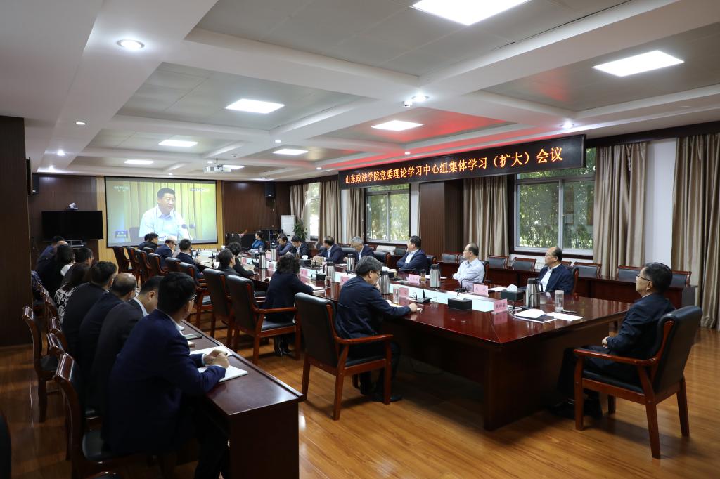 10月20日下午,山东政法学院党委书记张祥云主持召开学校党委理论学习中心组集体学习(扩大)会议,专题学习习近平总书记对宣传思想文化工作的重要指示和全国宣传思想文化工作会议精神。党委理论学习中心组成员、各基层党委和党总支书记参加学习。