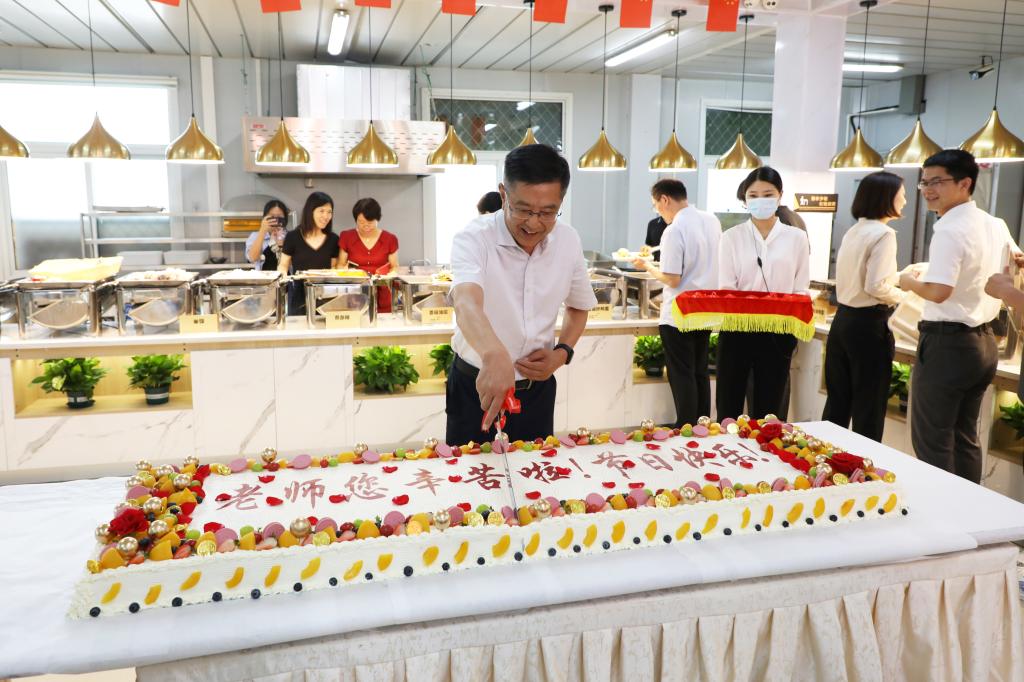 后勤管理处组织开展庆祝教师节自助餐会。“老师您辛苦啦,节日快乐!”精美馨香的奶油蛋糕让教师们品尝到教书育人的自豪甜蜜,色泽鲜艳的水果象征着桃李满天下的收获喜悦,用心烹制的可口菜肴鼓足了教师们干事创业的劲头。自助餐会还设置了抽奖活动,一份份意外惊喜、一张张笑脸点缀着喜庆的节日气氛。
