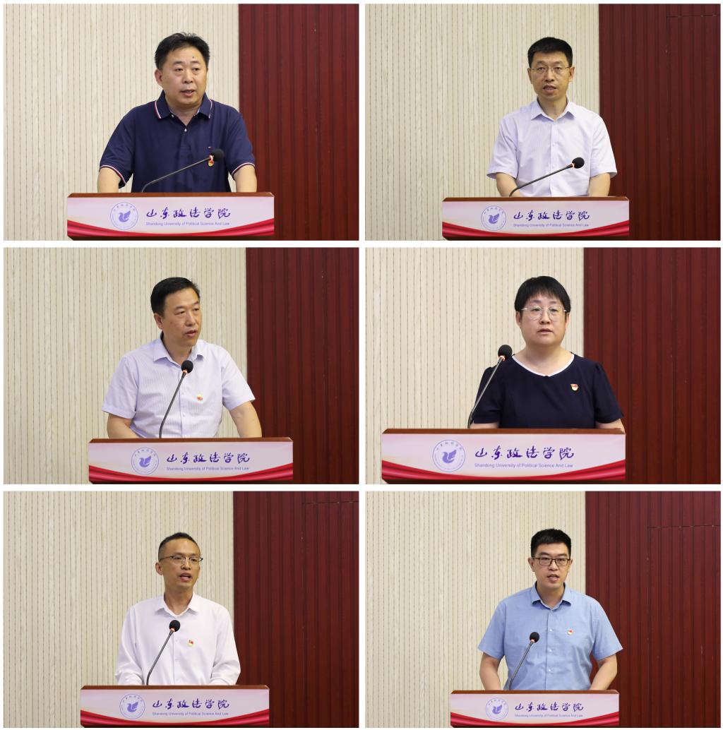 会上,法学院院长管伟、经济贸易法学院院长刘万啸、商学院院长孙建全、传媒学院院长孟文彬、公共管理学院院长来丽锋、图书馆党总支书记、馆长胡杨结合自身学习体会和工作实际进行交流发言。