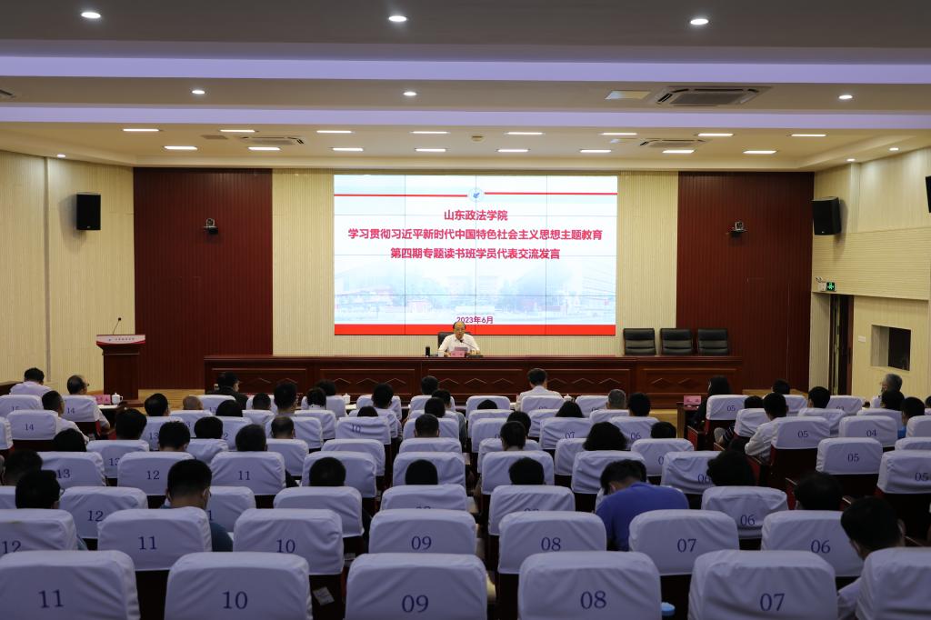 根据学校党委主题教育领导小组工作安排和《山东政法学院主题教育第四期专题读书班方案》要求,6月16日下午,山东政法学院开展主题教育第四期专题读书班学员交流发言。省委主题教育第21巡回指导组副组长崔晓红和成员杨大胜出席指导。学校党委副书记赵斌主持会议并讲话,校领导、党委委员,全校中层以上干部参加会议。