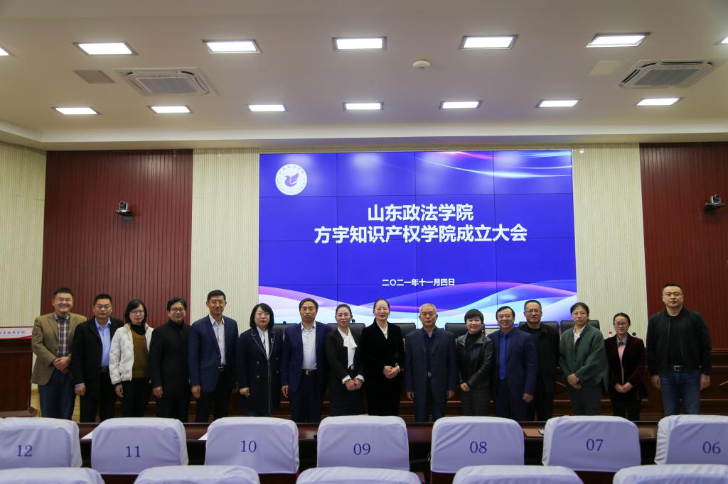 2021年11月4日,山东政法学院方宇知识产权学院成立大会在知行楼庭审直播室举行。山东政法学院副校长许海波、教务处处长张玉成、法学院院长窦衍瑞、教务处副处长魏黎明与方宇知识产权董事长孙明香、总经理张文、山东方宇商标事务所总经理缪香文、山东方赢律师事务所主任孙长磊、济南方宇专利代理事务所副总经理邱晓娟参加成立大会。山东政法学院民商法学院院长刘涛主持成立大会。