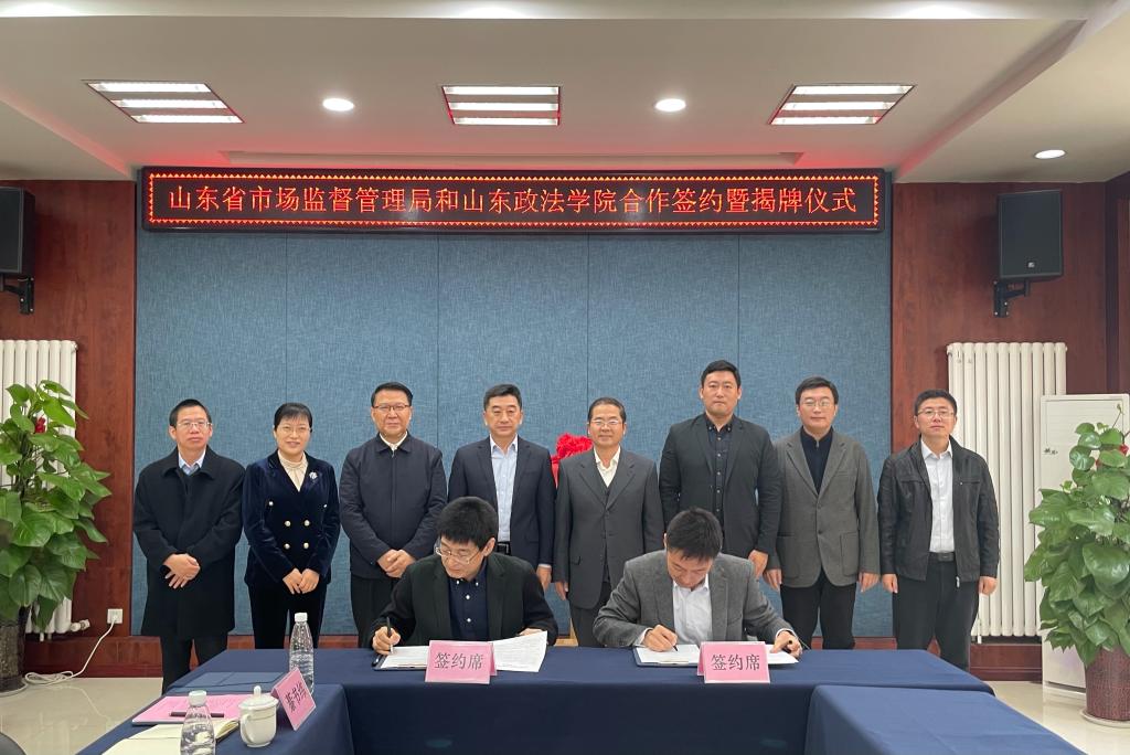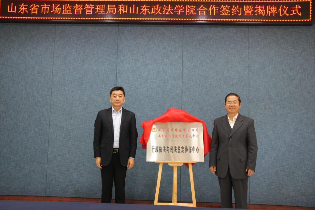 10月22日上午,山东政法学院与山东省市场监督管理局合作协议签订暨“行政执法与司法鉴定协作中心”揭牌仪式在司法鉴定中心会议室举行。山东政法学院党委书记李玉福、省市场监管局一级巡视员张健为协作中心揭牌,山东政法学院副院长刘炳君主持仪式。省市场监管局反垄断局局长颜非、山东政法学院司法鉴定中心主任李学博代表双方签署合作协议。省市场监管局反垄断局四级调研员赵跃程,刑事司法学院副院长张爱艳,网络空间安全学院副院长吴剑、副院长常旭,竞争法治研究院院长綦书纬等参加签约仪式。