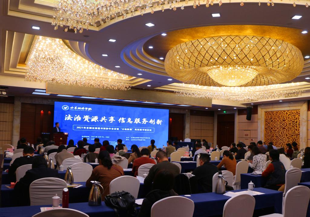 金秋十月,丹桂飘香。10月16日至18日,由全国法律图书馆协作委员会主办,山东政法学院图书馆承办的“2021年全国法律图书馆协作会议暨‘立格联盟’高校图书馆会议”在济南召开,山东政法学院院长吕涛在开幕式上致辞,山东政法学院党委委员、副院长郭建国主持开幕式;中国政法大学党委常委、副校长兼图书馆馆长时建中,山东省高校图书情报工作委员会主任、山东大学图书馆馆长赵兴胜出席开幕式,北京大学二级研究馆员、山西大学图书馆馆长肖珑,清华大学图书馆副馆长张秋,江苏大学图书馆教授、博士生导师卢章平分别做大会主旨报告,来自“立格联盟”高校图书馆、国家图书馆、全国部分法律图书馆、山东省部分省属高校图书馆共计80余名代表参加会议。会议围绕“法治资源共享,信息服务创新”主题,深入探讨了法律图书馆在法治资源共建共享方面的路径与策略,明确了开展深层次服务的实践方向,进一步加强了全国法律图书馆及“立格联盟”高校图书馆之间的协作与交流。