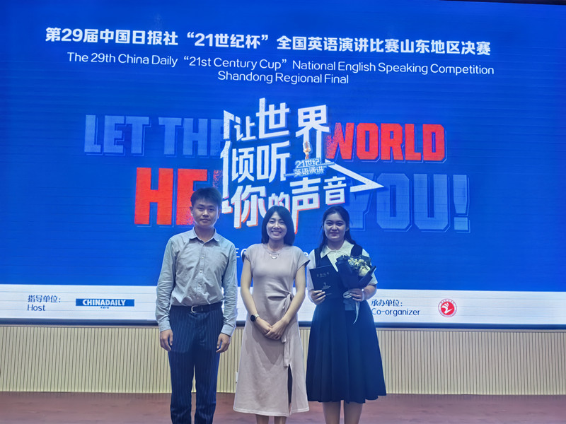 6月23日,第29届“21世纪杯”全国英语演讲比赛山东地区决赛在烟台职业学院举行。山东政法学院经济贸易法学院23级法学3班童予人同学以总分第二名的优异成绩斩获山东赛区决赛亚军,外国语学院23级立格班张逍晗同学获得山东赛区决赛二等奖,两名同学均成功晋级全国半决赛。外国语学院教师金菲获“优秀指导教师”称号。