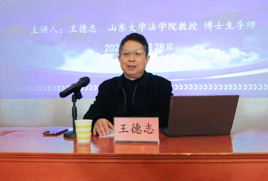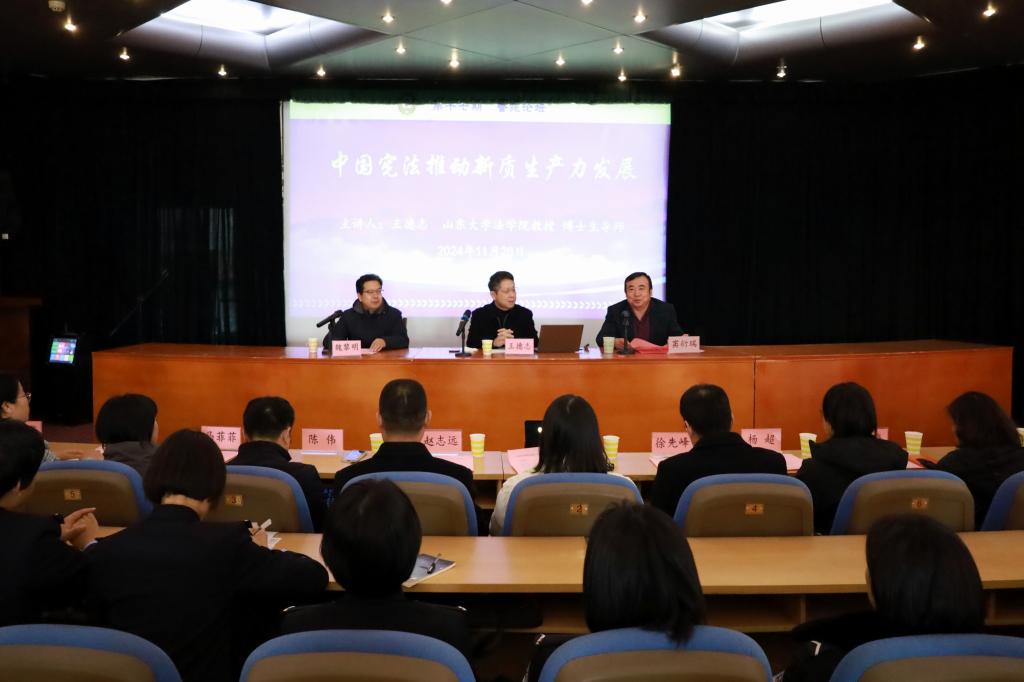 11月28日下午,警官学院第十一个国家宪法日宣传活动暨第十七期“警苑论坛”在图书馆学术报告厅举行。山东大学王德志教授应邀参加论坛并作题为“中国宪法推动新质生产力发展”的学术讲座。学校党委委员、副校长窦衍瑞为宪法周学术活动致词,警官学院院长魏黎明主持论坛。