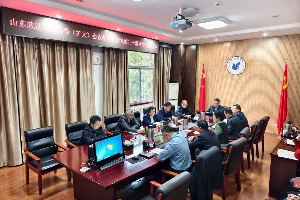 10月27日,山东政法学院召开党委(扩大)会议,专题学习党的二十届四中全会精神,研究部署学校贯彻落实工作。学校党委书记张祥云主持会议并讲话。学校领导班子成员、有关部门负责同志参加会议。
