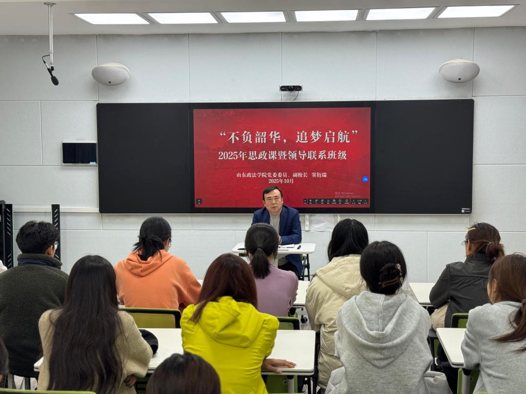 10月28日,山东政法学院党委委员、副院长窦衍瑞走进传媒学院2025级新闻学1班,与新生班级座谈交流并讲授思政课。