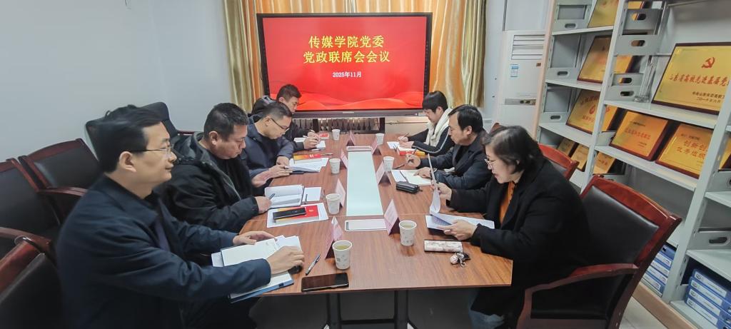 11月12日,传媒学院在尚德楼501会议室召开党政联席会议。党委委员、副院长窦衍瑞列席会议并作指导。会议由传媒学院党委书记徐永青主持,党委领导班子全体成员参加。