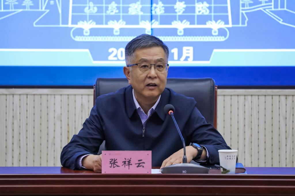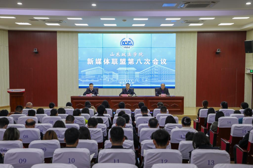 为全面总结学校新媒体工作成效,明确下一阶段工作重点,推动全校新媒体矩阵守正创新、融合赋能,11月21日,山东政法学院召开新媒体联盟第八次全体会议,对2025年度新媒体联盟工作取得突出成绩的单位和个人进行表彰,对学校网络意识形态工作和新媒体工作进行部署,并开展“鼎山理论讲坛”,对宣传思想文化工作队伍进行业务培训。党委书记张祥云出席会议并讲话。党委副书记赵斌主持会议。