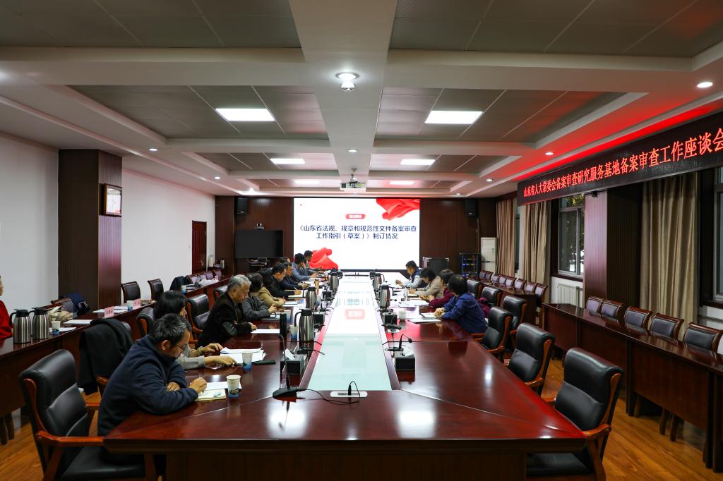 11月26日,山东省人大常委会备案审查研究服务基地备案审查工作座谈会在山东政法学院召开。省人大常委会法工委副主任刘源一行来校调研指导。山东政法学院院长王效彤,党委委员、副院长窦衍瑞出席会议。立法研究院执行院长刘尚华主持座谈会。