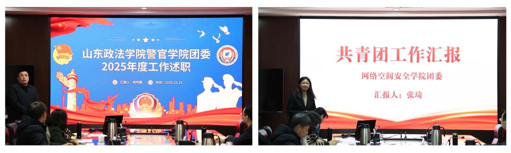 12月15日,山东政法学院2025年度基层团组织述职评议会在鼎山楼第二会议室召开。党委委员、副院长蒋海升出席会议并讲话。党委组织部、党委宣传部、学生工作处相关负责同志,各二级学院及研究生处党委书记、副书记参加会议。会议由校团委书记贾俊涛主持。