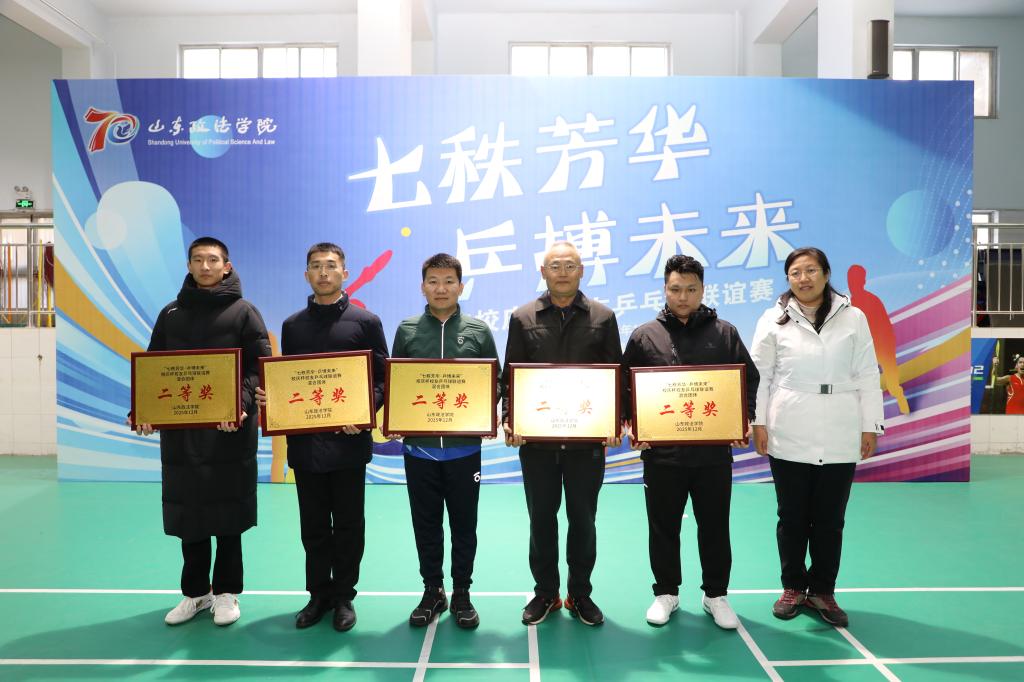 七秩弦歌催奋进,乒乓跃动聚同心。为献礼山政70周年华诞,凝聚校友与母校的深情厚谊,传承弘扬山政人拼搏进取、昂扬向上的意志品质,12月14日,山东政法学院举办“七秩芳华,乒搏未来”校庆杯校友乒乓球联谊赛。来自各地市由校友组成的11支代表队与教工、学生代表队以球会友、切磋竞技,为校庆献上一场精彩纷呈的体育赛事。山东政法学院院长王效彤,党委委员、副院长孙会海,党委委员、副院长蒋海升出席活动。学校招生就业处、体育教学部有关负责同志参加活动。