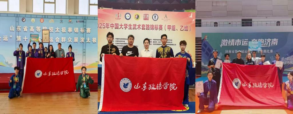 在2025年中国大学生武术套路锦标赛中,勇夺男子甲组主动健身功法南少林易筋经冠军、女子甲组二十四节气健身功法白露养生功冠军,同时斩获男子甲组通臂拳亚军。在2025年济南市第一届运动会武术套路比赛中,更是表现突出:苏海东获男子甲组自选长拳第一名,李鹏伟摘得男子甲组自选南棍第一名,黄佳乐拿下女子甲组自选太极剑第一名,李永祉斩获女子甲组自选长拳第一名。