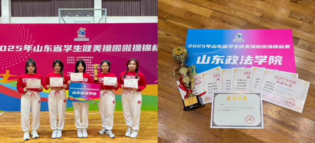 在2025年山东省学生健美操啦啦操锦标赛中,学校排舞队凭借精湛的编排、默契的配合与饱满的热情,在高校甲组小集体大众街舞项目中脱颖而出,斩获第一名优异成绩。荣誉背后,是队员们日复一日的刻苦训练,更是教练郑雅洁的悉心指导与精准把控,展现了学子们青春昂扬的精神风貌。