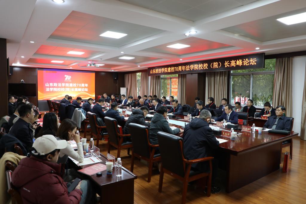 12月21日,山东政法学院建校70周年全国法学院校校(院)长高峰论坛在学校鼎山楼举行。论坛由山东政法学院主办,来自中南财经政法大学、西北政法大学、甘肃政法大学、新疆政法学院、烟台大学、山东农业大学、山东理工大学、山东科技大学、青岛科技大学、济南大学、德州学院等高校的校(院)长及专家学者参加。