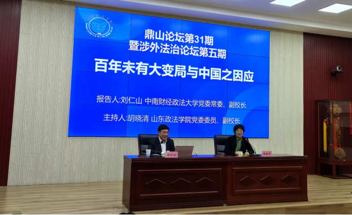 12月20日,鼎山论坛第31期暨涉外法治论坛第5期在知行楼报告厅顺利举行,本期主题为“百年未有大变局与中国之因应”。论坛特邀中南财经政法大学党委常委、副校长刘仁山教授担任主讲嘉宾,就百年未有之大变局提出的背景、百年未有之大变局下中国面临的挑战、百年未有之大变局下中国的应对展开深入讲解。本次论坛由山东政法学院党委委员、副院长胡晓清教授主持,涉外法治学院与经济贸易法学院联合主办。