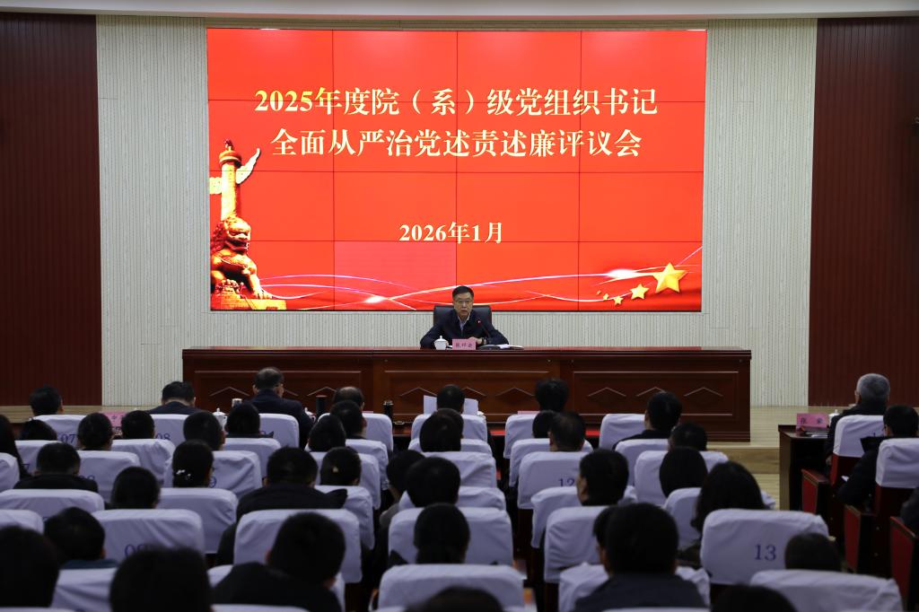 会议强调,2026年是“十五五”开局之年,各级党组织要在政治建设上持续用力,筑牢对党绝对忠诚的思想根基。把学习贯彻习近平新时代中国特色社会主义思想作为首要政治任务,深刻领会习近平总书记关于党的建设的重要思想,坚持和加强党的全面领导,将自我革命精神贯穿管党治党全过程。以服务教育强国、教育强省建设为着力点,引导党员干部深刻领悟“两个确立”的决定性意义,切实增强“四个意识”、坚定“四个自信”、做到“两个维护”。要在责任落实上持续用力,拧紧全面从严的压力链条。党组织书记扛起第一责任人职责,班子成员履行“一岗双责”,把严的标准、严的措施贯穿管党治党全过程。坚持问题导向,找差距补短板,落实学校改革发展要求。推动党建与业务深度融合,将责任压力传导至“神经末梢”。要在正风肃纪上持续用力,营造风清气正的政治生态。锲而不舍落实中央八项规定精神,驰而不息纠治“四风”。密切联系群众,用心用情为师生办实事、解难题。加强纪律教育和警示教育,引导党员干部知敬畏、存戒惧、守底线。纵深推进师德师风建设,将师德第一标准贯穿教职工管理各环节,推进师德师风建设提质增效。要在强基固本上持续用力,锻造坚强有力的战斗堡垒。树立大抓基层的鲜明导向,持续推进党支部标准化规范化建设,加强对党员的教育管理监督,把基层党组织建设成为有效实现党的领导的坚强战斗堡垒,为学校高质量发展提供坚实组织保证。