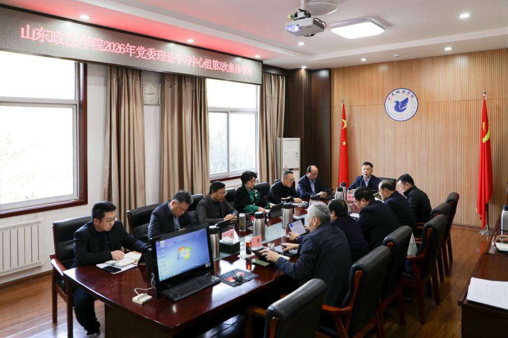 1月22日,山东政法学院党委理论学习中心组在鼎山楼党委会议室举行2026年度第2次集体学习。党委书记张祥云主持会议并讲话,党委理论学习中心组成员参加学习。