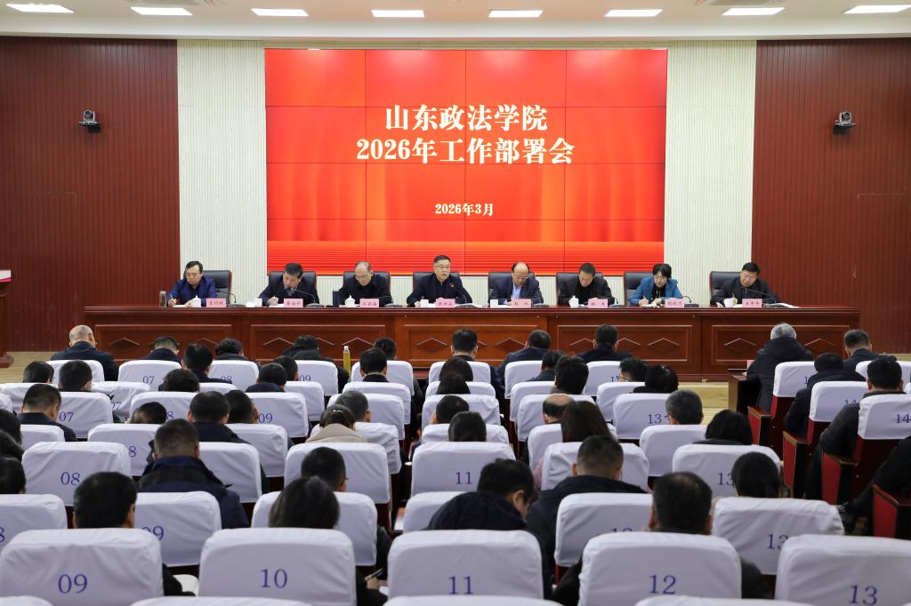 3月6日,山东政法学院召开2026年工作部署会。学校党委书记张祥云出席会议并讲话,全面部署学校重点工作。党委副书记赵斌主持会议。各分管校领导分别就负责领域工作进行具体安排。