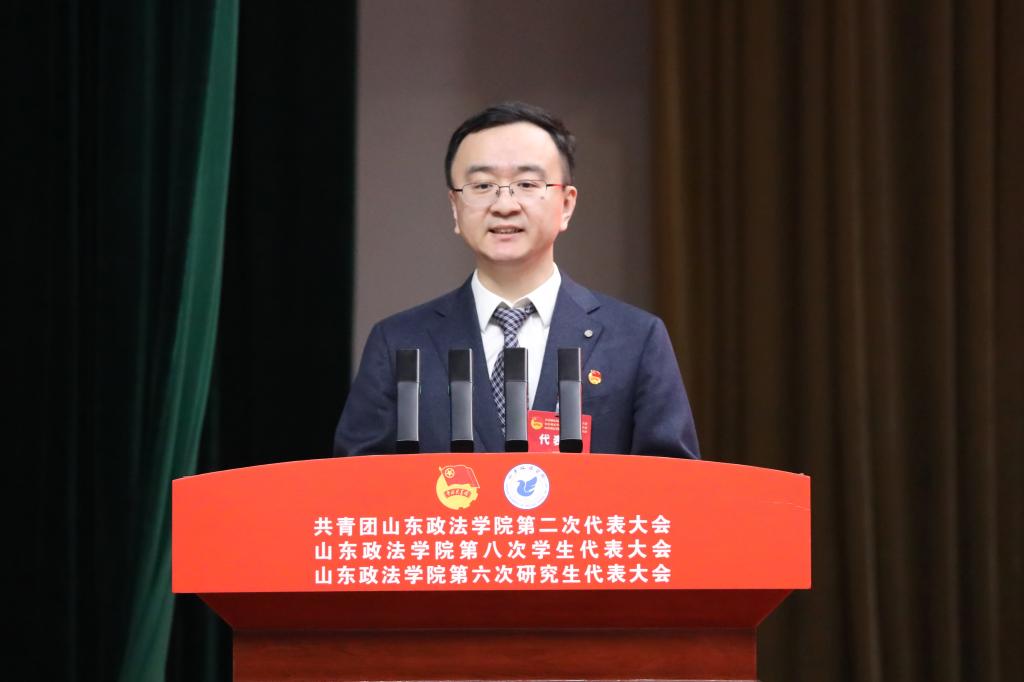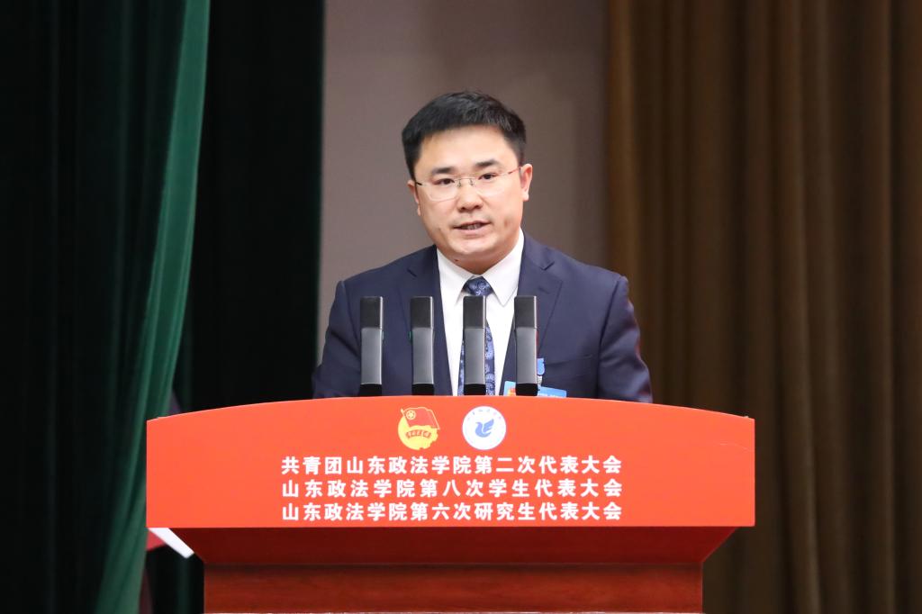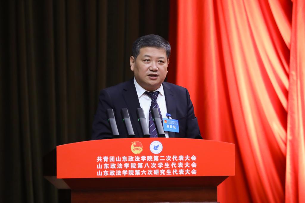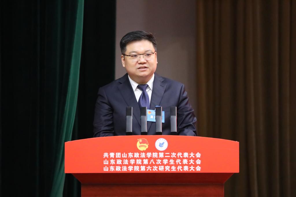 盛夏代表共青团山东省委向大会的召开表示热烈祝贺,对学校高质量发展和共青团工作给予充分肯定。他对全校各级团组织和团员青年提出四点希望:一要紧扣“政治学校”功能定位,强化理论武装,引领青年学子坚定不移听党话、跟党走,争做新时代好青年;二要扛牢“先锋力量”使命职责,发挥法学专业优势,擦亮法治服务品牌,激励青年学子勇当法治建设的排头兵和生力军;三要发挥“桥梁纽带”关键作用,聚焦青年急难愁盼,争做青年学子成长成才的贴心人和引路人;四要聚焦“先进组织”建设目标,深化团学改革,坚持从严治团、从严治会,锻造过硬队伍、树立清新形象。希望全校团员青年胸怀法治理想、勤学笃行、担当实干,努力成长为德法兼修的高素质法治人才,不断开创学校共青团和青年工作新局面,为新时代社会主义现代化强省建设贡献青春力量。