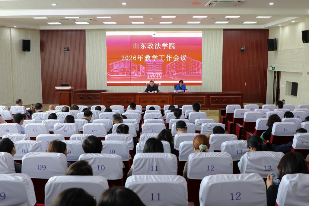4月3日下午,山东政法学院召开2026年教学工作会议。会议以“新时代新使命新征程 重塑人才培养模式 提高人才培养质量”为主题,总结过去成绩,分析发展形势,部署重点任务,并正式启动“智鼎未来人才培养重塑计划”。院长王效彤出席会议并讲话,党委委员、副院长胡晓清主持会议。
