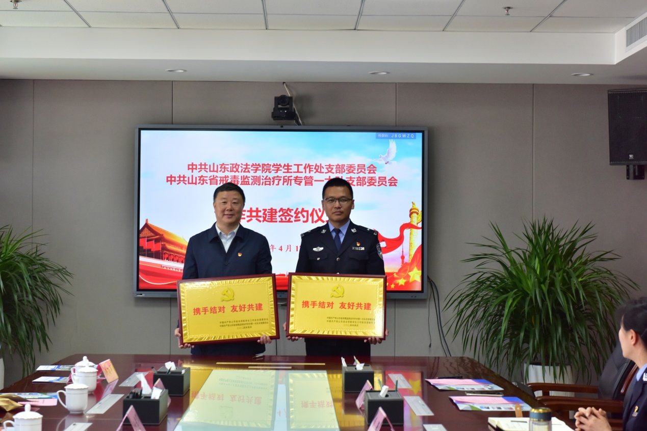 为充分发挥党建引领作用,组织开展好党纪学习教育,构建优势互补、资源共享、双向促进、共同提高的基层党建工作格局,4月17日,学生工作处党支部开展党纪学习教育启动仪式暨与山东省戒毒监测治疗所专管一大队党支部合作共建主题党日活动。山东政法学院学生工作处党支部书记、处长安军,副处长刘孝军、吕英民、张晓琳,山东省戒毒监测治疗所党委副书记、政委王波,党委委员、副所长吕鑫,专管一大队党支部书记李伟康出席活动。