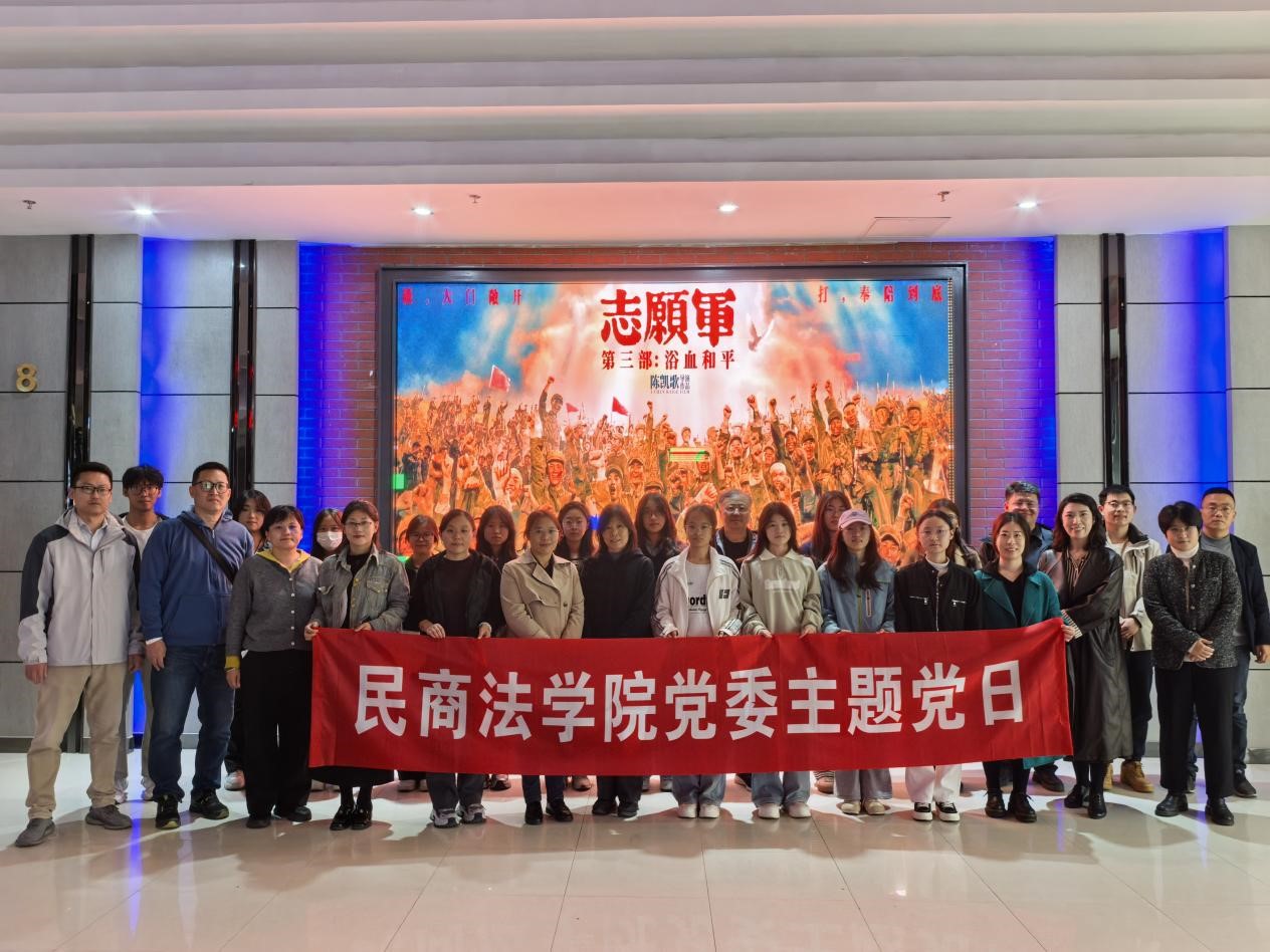 为深切缅怀革命先烈,传承红色基因,弘扬爱国主义精神,11月14日,民商法学院党委组织师生党员及入党积极分子开展主题党日活动,集体观看爱国主义影片《志愿军:浴血和平》。