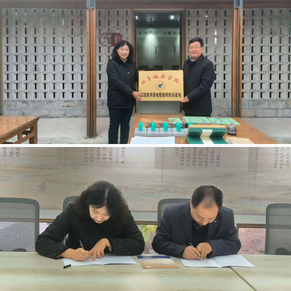 在小院议事厅,马克思主义学院党总支书记陈志勇、院长栗献忠共同为泉城路街道“实践教学基地暨教师培训基地”授牌,并签署共建协议,标志着校地合作迈入新阶段。此次主题党日活动也是马克思主义学院党总支贯彻落实学校关于二级党组织理论学习中心组学习方式多样化要求的具体实践,兼具理论学习与实地调研的双重功能。马克思主义学院党总支成员、理论学习中心组成员、各党支部及教师代表参加活动。