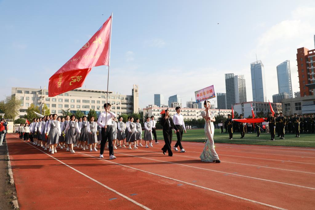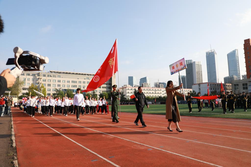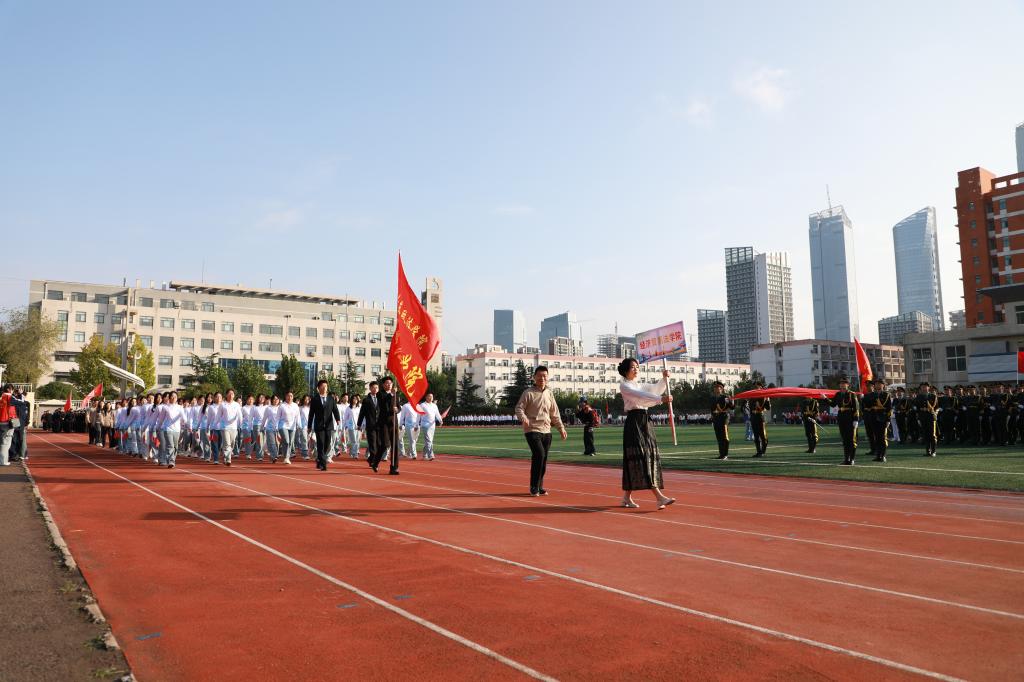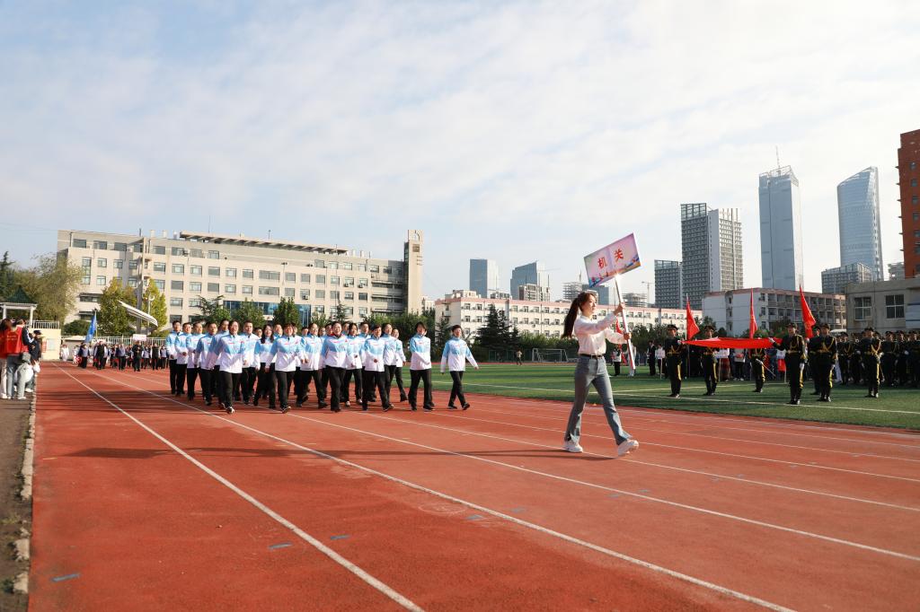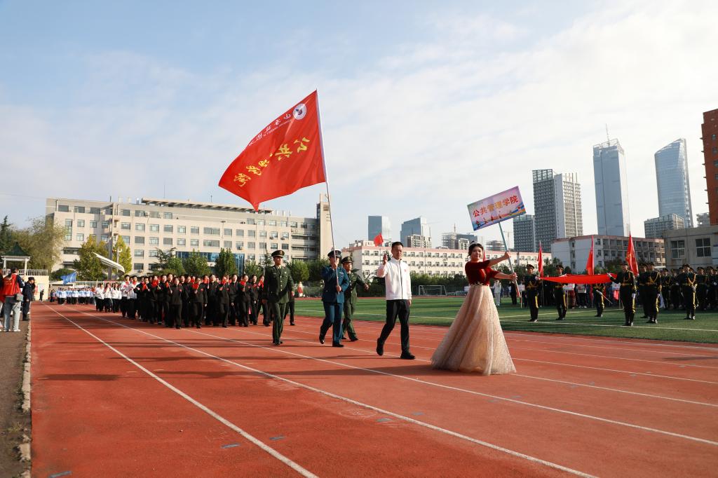 开幕式上旗帜飘扬,气氛热烈。八时许,激昂旋律响起,国旗方队率先入场,步伐铿锵、容光焕发;红旗方队精神抖擞,紧随其后。由各学院、部门及校友代表组成的14支方队依次整齐入场,队员们步伐矫健、口号嘹亮,生动展现了山政人朝气蓬勃、锐意进取的精神风貌。